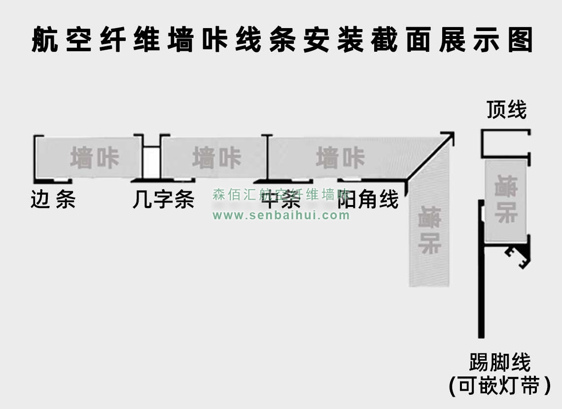 嘉峪关航空纤维墙咔铝合金带灯中条(哑黑氧化)